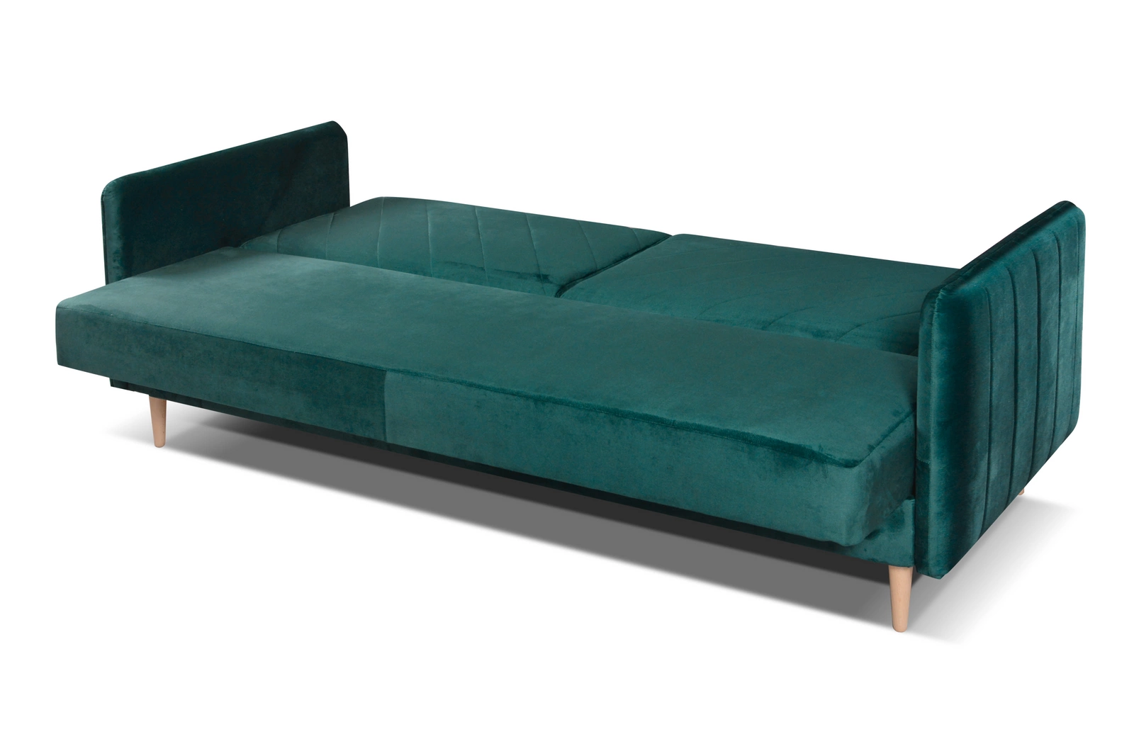Dzięki funkcji spania w kilka chwil zamienia się w wygodne łóżko, a pojemny schowek na pościel pozwala utrzymać porządek i oszczędzić miejsce. Smukłe drewniane nóżki nadają jej lekkości, a cała konstrukcja doskonale komponuje się z nowoczesnymi, loftowymi i skandynawskimi wnętrzami.