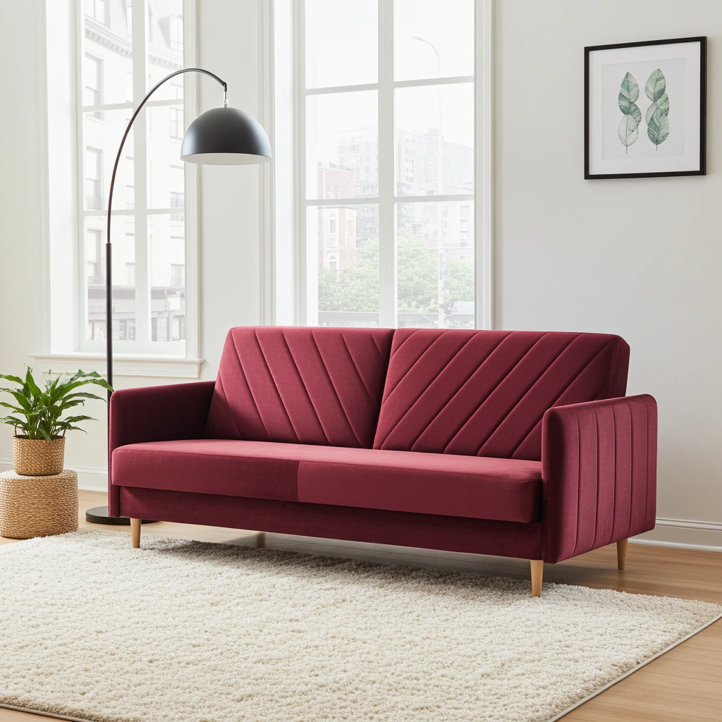 Dzięki funkcji spania w kilka chwil zamienia się w wygodne łóżko, a pojemny schowek na pościel pozwala utrzymać porządek i oszczędzić miejsce. Smukłe drewniane nóżki nadają jej lekkości, a cała konstrukcja doskonale komponuje się z nowoczesnymi, loftowymi i skandynawskimi wnętrzami.