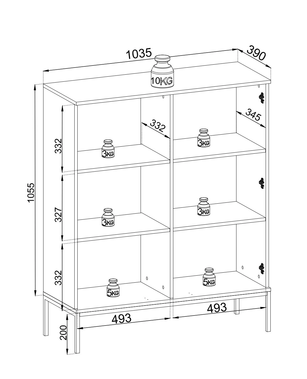 Elegancka witryna o wysokości 126 cm łączy praktyczne przechowywanie z ekspozycją ozdób. Jedno skrzydło wykończono pionowym ryflowaniem MDF, drugie wykonano z hartowanego szkła i doświetlono dwupunktowym, ciepłym LED-em. Stabilną podstawę tworzą smukłe metalowe nogi, które nadają bryle wizualnej lekkości i ułatwiają sprzątanie, również z użyciem robota.