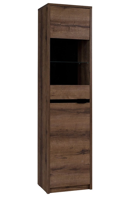 - Stylowy witryna w kolorze Dąb Monastery / Czarny Połysk szerokość 50 cm – idealna do nowoczesnych wnętrz, stworzy wygodną przestrzeń do codziennego użytku.