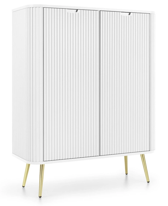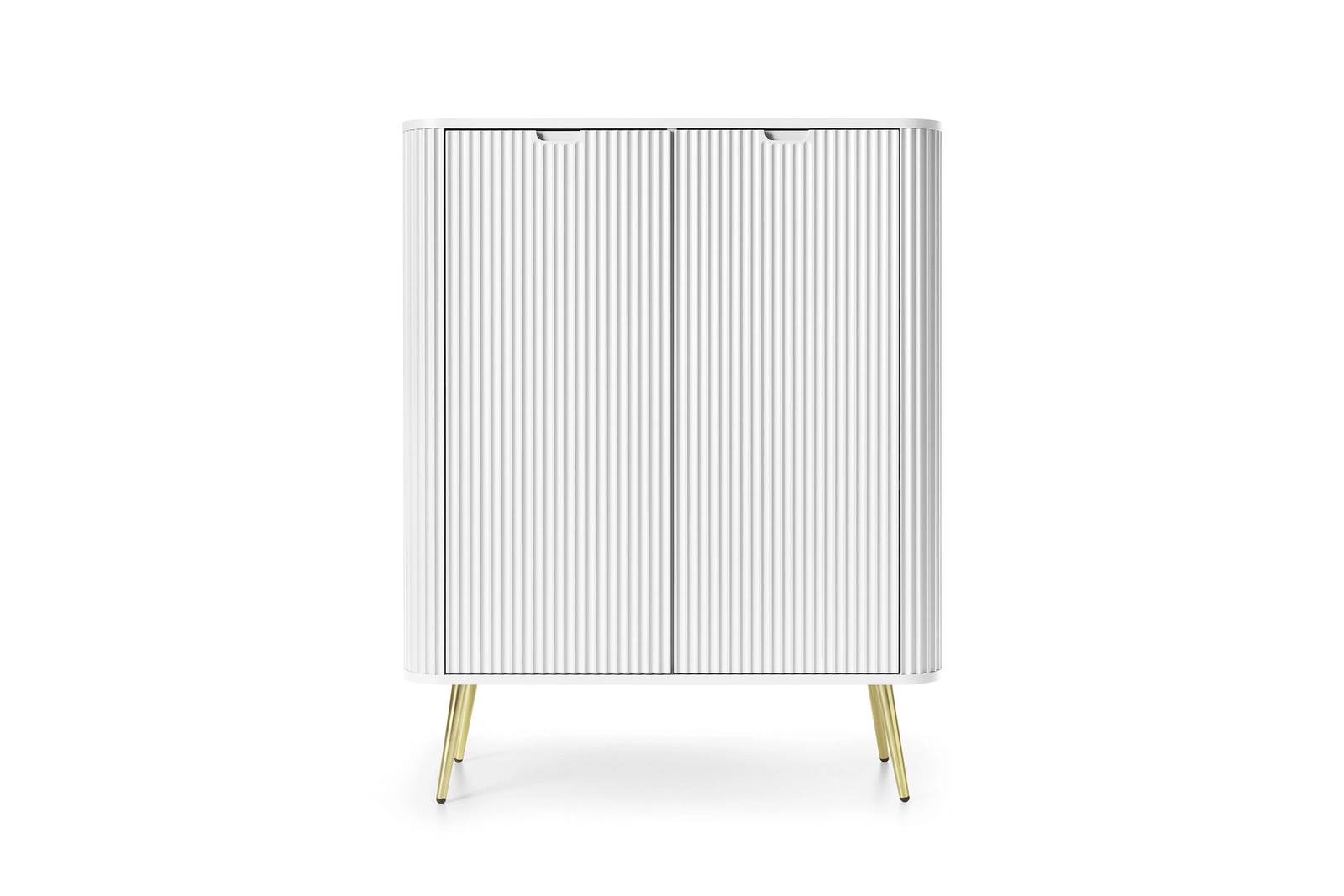 Wysoka komoda Porto dwudrzwiowa biała z ryflami zaokrąglona + złote nogi