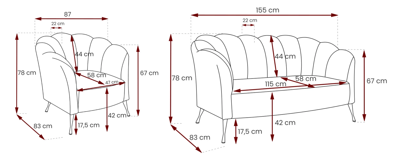 • Sofa dwuosobowa Adria - szerokość: 155cm, Wysokość: 78cm, Głębokość: 83cm